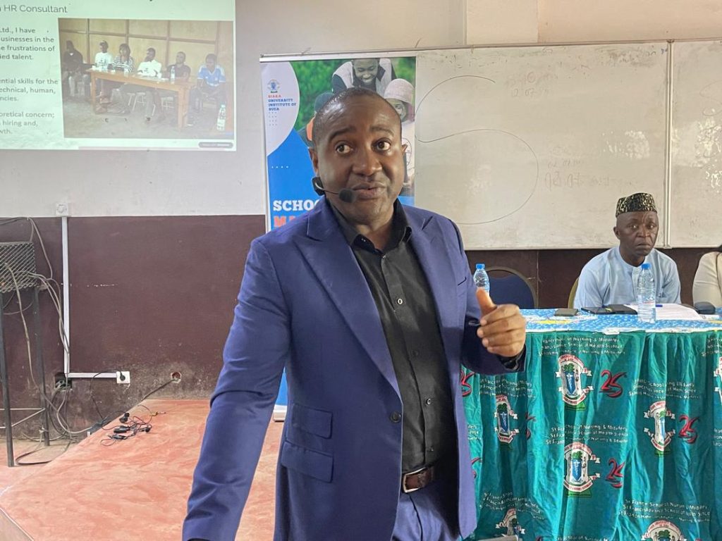 Next on stage was Mr. Laye Mbunkur, Managing Director of Bluemoon Ltd, who shared a stimulating presentation on the common challenges entrepreneurs face, particularly in today’s fast-changing digital age. He spoke candidly about the hurdles of adapting to new technologies, managing limited resources, and navigating global competition. Yet, his message was ultimately one of hope and resilience, urging students and budding entrepreneurs never to give up but to see challenges as opportunities to innovate.