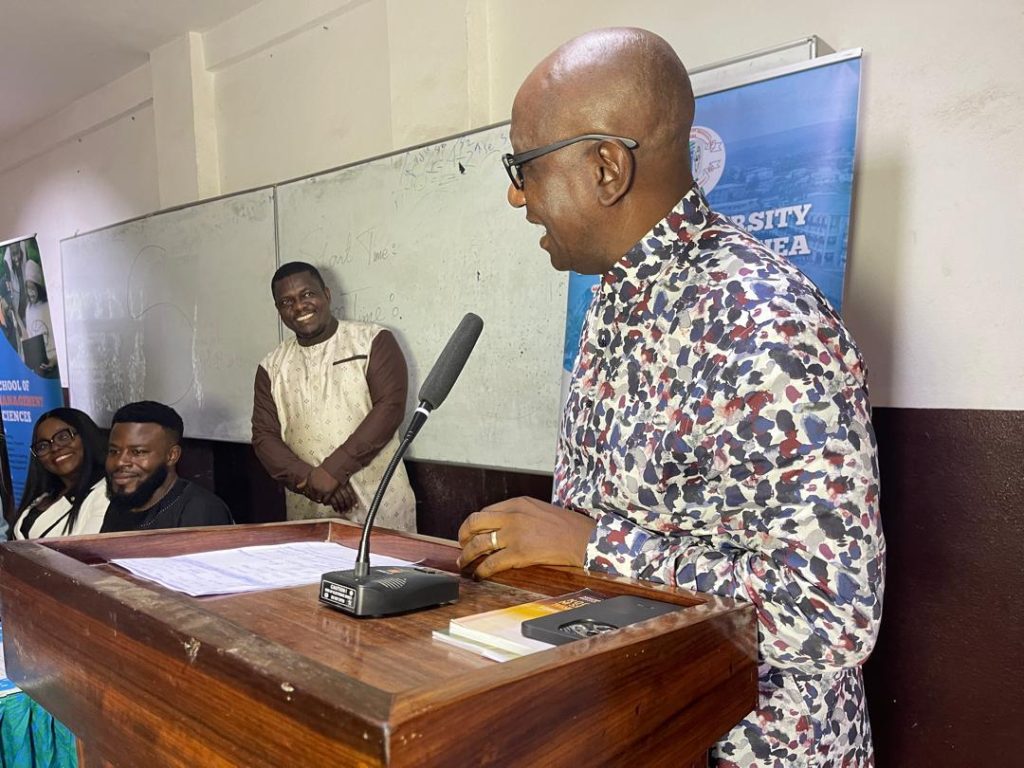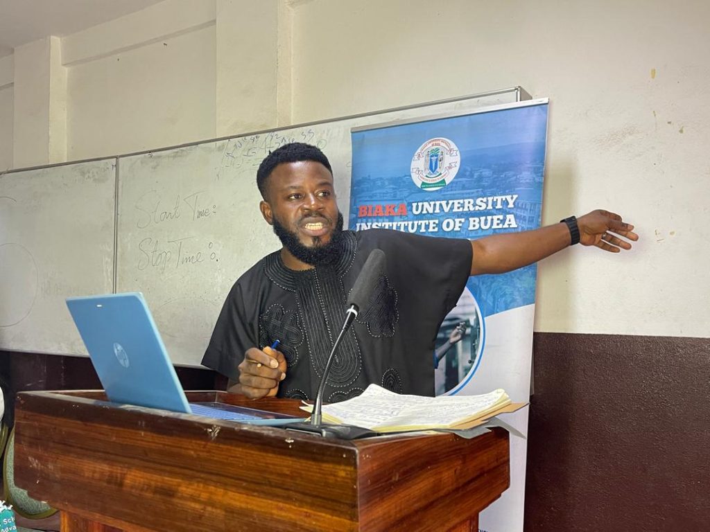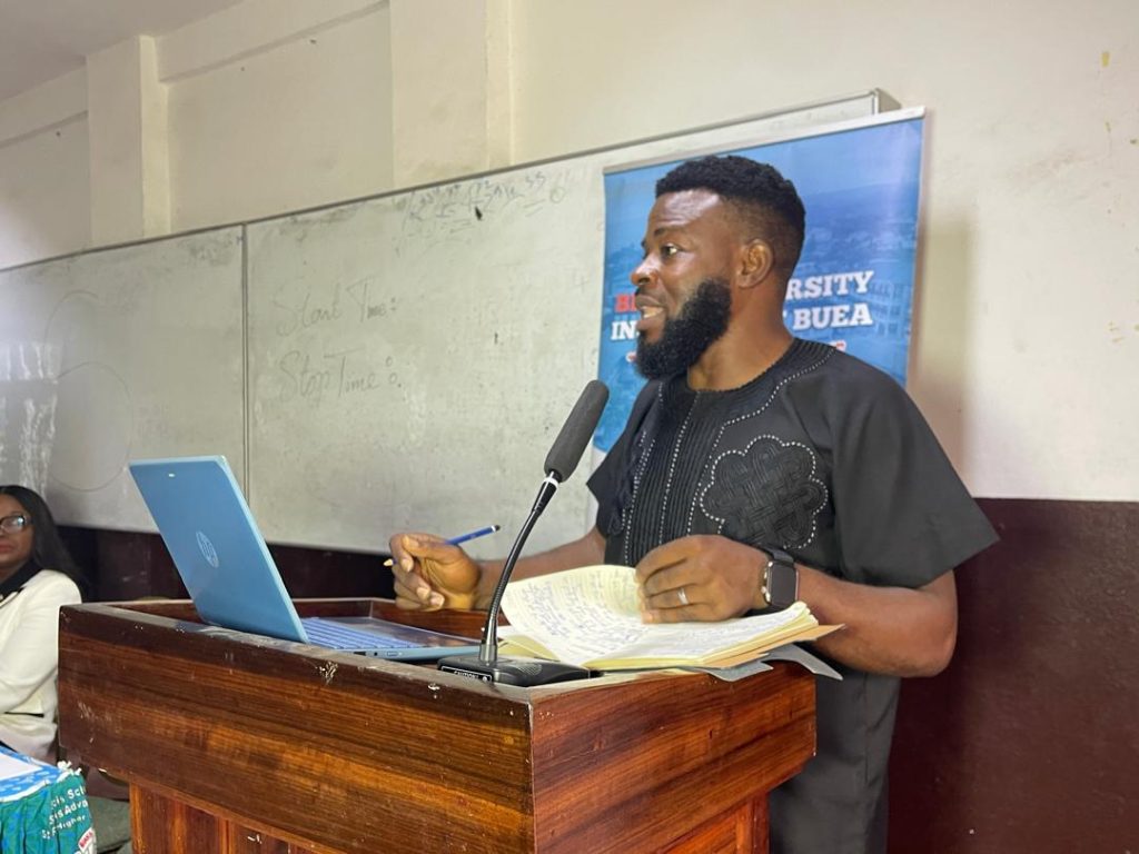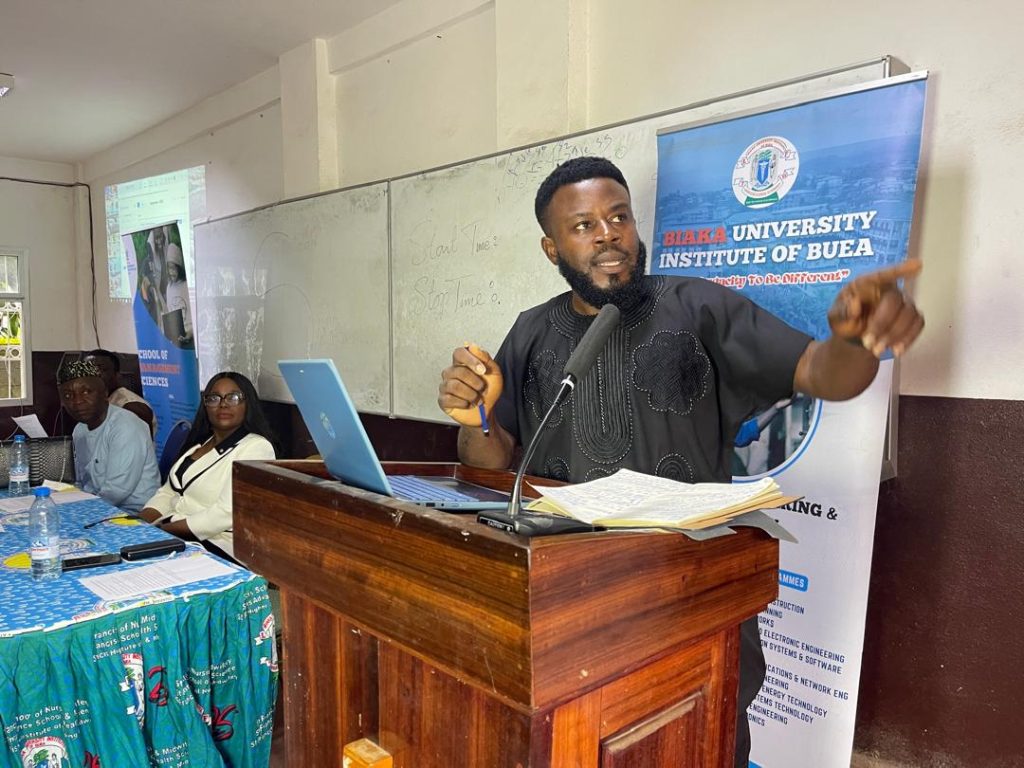 Opening remarks and a warm word of welcome were presented by Dr. Akom Delbert, Ombudsman of BUIB, representing the Vice Chancellor, Dr. Francisca Hongla Biaka. In his address, Dr. Delbert congratulated Mr. George for his remarkable contributions to knowledge and innovation through his writings. He described the two books as timely and visionary, noting that they aligned perfectly with BUIB’s mission of fostering excellence, innovation, and self-reliance among students. He reminded the audience that entrepreneurship is not merely a career path but a mindset, one that every student and professional must embrace to thrive in today’s competitive world.