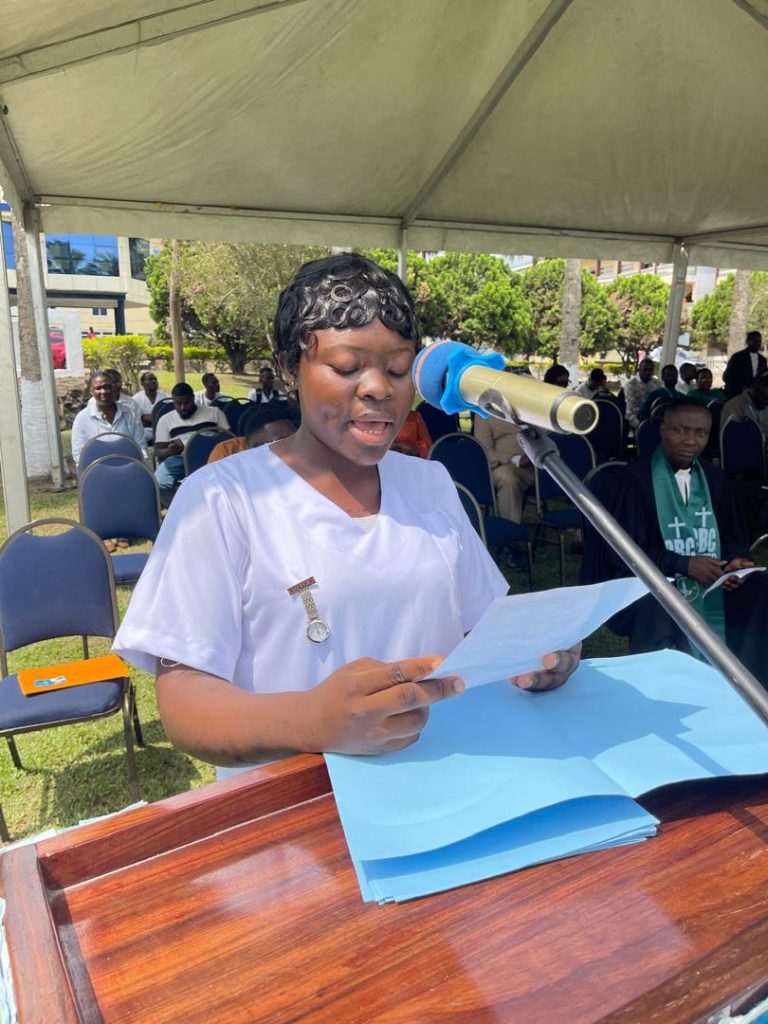 The ceremony continued with an uplifting induction speech delivered by Bih Mercy, a Level One Direct BSc Nursing student. Speaking on behalf of her peers, she expressed heartfelt gratitude to the administration, faculty, and families who had supported their dreams. She emphasized the determination of the new students to work hard, maintain discipline, and represent BUIB with pride. Her words captured the energy, ambition, and optimism of the incoming class.